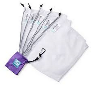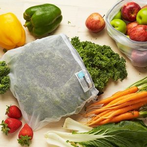 Convenient fresh produce bags, use them to select and carry your fruit and veggies. As the bags let water/air flow through, use them to wash your vegies before popping in the fridge, or simply hang them to keep fresh. The produce bags come in a colourful holder pouch, to make it easy to carry your produce bags to the shop. Dimensions: 19 x 11 x 3.5cm.
