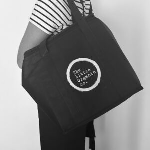 Meet our gorgeous Little Organic Co. black and white logo cooler bag! She’s big and roomy, perfect for keeping your farmers market shop or cold items cool and fresh.